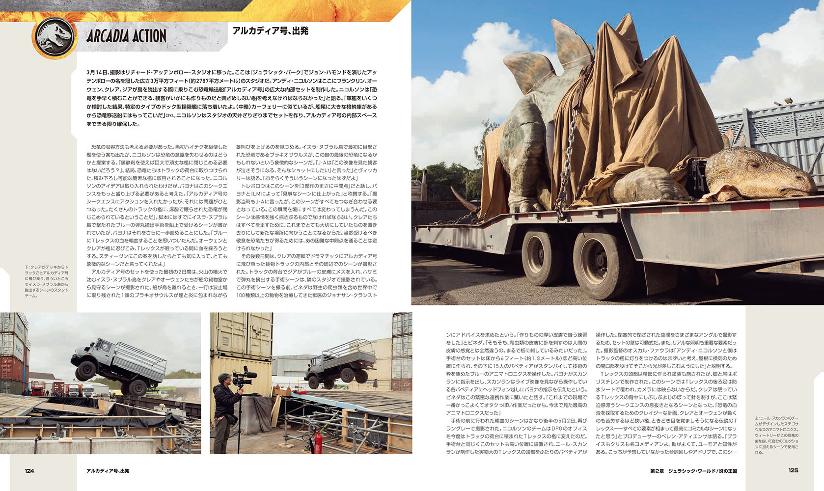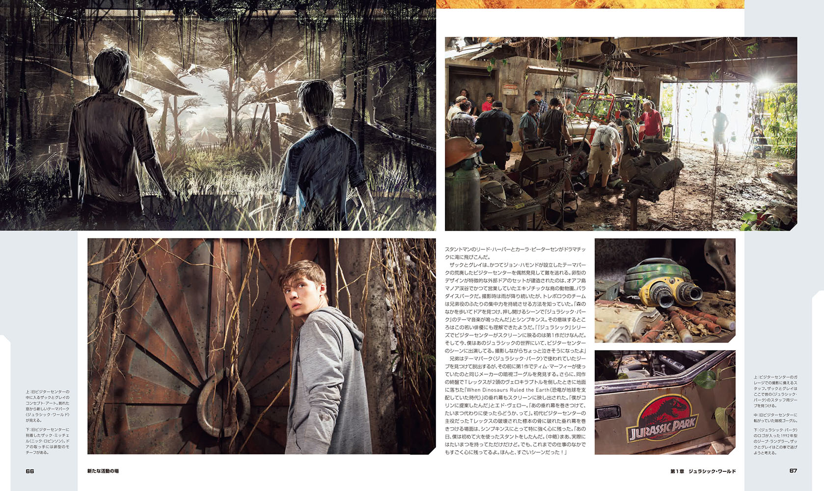 ในส่วนของเบื้องหลังการผลิตภาพยนต์ ก็จะมีรายละเอียดของการคัดเลือกนักแสดงไปจนถึงงานออกแบบและเสียงที่เกี่ยวข้อง นอกจากนี้ยังการแนะนำผลงานสปินออฟ เช่น เรื่องสั้น "Battle at Big Rock" และซีรีส์แอนิเมชั่น "Jurassic World / Survival Camp" รวมไปถึงสินค้าจากภาพยนต์เรื่องนี้ เช่น ฟิกเกอร์ ของเล่น เกม สวนสนุก และการแสดงบนเวทีในสถานที่ต่างๆ ด้วยปริมาณเนื้อหาภายในเล่มมากกว่า 250 หน้า จึงเป็นสุดยอดหนังสือที่แฟน ๆ  "Jurassic World" น่าจะมีเก็บสะสมไว้ในคอลเล็กชั่นจริง ๆ