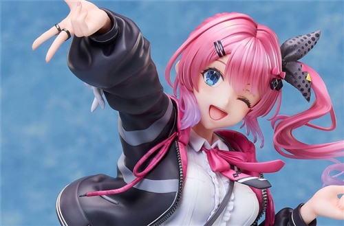 This figure brings to life the incredibly popular VTuber Kuramochi Meruto from Nijisanji. Her energetic leaping pose, complete with a radiant smile, is full of dynamism and perfectly captures her bright and powerful charm. There are plenty of details to admire, from the polka-dot ribbon and the metallic feel of the rings and zippers to the meticulously painted colorful sneakers. The base also comes with a plate modeled after Kuramochi Meruto's signature.