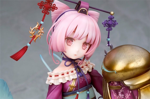 From ``Atelier Sophie ~The Alchemist of the Mysterious Book~'' comes Cornelia, a girl who is an alchemist and runs a retail store in Kirchen Bell. Her gentle expression and pose as if she is floating down on one leg are cute. The contrast between the soft shape of her body and her weapon, the gauntlet, emphasizes the delicateness of a girl. Her oriental costume is a sight to behold, with wrinkles on her sleeves, ruffles on her chest, and a string decoration on her head. The contrasting coloring is a combination of pale coloring and hard metal texture, and the gold accent color and pattern create a gorgeous look.