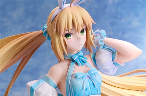 The adorable light blue dress faithfully reproduces the illustration from the game. Meticulous attention was paid to every detail of painting the figure, especially around her tights and ribbon lines. The figure also includes a faithful reproduction of Mistilteinn, the Ten Bundle Sword.