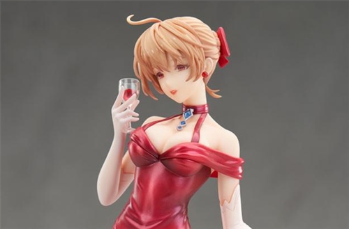 The figure wearing a red nightgown and standing with a glass in one hand is faithfully reproduced based on the illustration. Her crimson dress has pearl coating that gives it a three-dimensional effect and makes it more elegant.