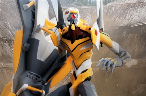 Introducing the Blokees-Evangelion Action Edition EVA-00 plastic kit! Includes a rocket launcher, effect parts, shield, pallet rifle, transport platform, and collapsed building diorama parts.