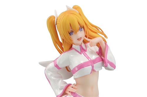 A three-dimensional cosplay figure of Lilisa Amano dressed as the two-dimensional character “Liriel” that she loves dearly! She is wearing a bold separate outfit that exposes her stomach, and is equipped with angel wings on her back.
