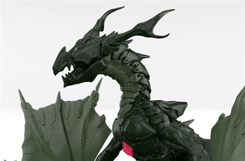 The newly released "Drow Wyvern" is one of the monsters that inhabit the story's background world and will be encountered during adventures; it can also be tamed as a flying mount. The kit uses two molded parts in dark green and light green to construct the dragon's body. Its design incorporates the lines of a creature's muscles, scales, and metallic armor throughout its body, while the red elemental core on its chest is made using transparent parts. Its limbs have flexible, movable joints, and its wings and eye mask have opening and closing mechanisms. Using the saddle and reins on its back, it can become a mount and can be ridden with 30MF series characters.