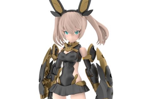 Armaments with a pestle design motif can also be rearranged into spear mode. The small head and body are divided into upper and lower parts, allowing for expressive poses. The twin tails are movable with ball joints, and a rabbit ear-shaped headband made of multiple parts is also included. Two types of skirts are included. In addition to the normal parts, parts with a flipped form are included, so they do not hinder the movement of the legs during action poses. Joint parts using light-concentrating resin are included.