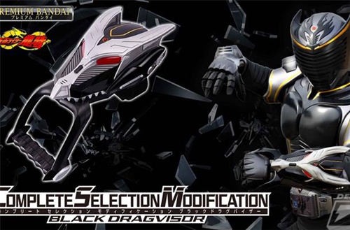 The summoning device used by Kamen Rider Ryuga, the Black Drag Visor, has been commercialized as part of the transformation item brand for adults, the "COMPLETE SELECTION MODIFICATION (abbreviated as CSM)" series. The distinctive black color of the Black Drag Visor has been reproduced by painting. The shape follows the previous product "CSM Drag Visor", and the size is such that even adults can wear it with ease.