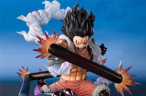 This figure recreates the powerful move that Luffy unleashed at the end of his long, passionate duel with Katakuri. Its long arms are distinctive, as they wrap around Luffy's body. Don't miss the flashy effects created using clear parts, and the fierce expression on Luffy's face, as he exudes his aura of dominance.