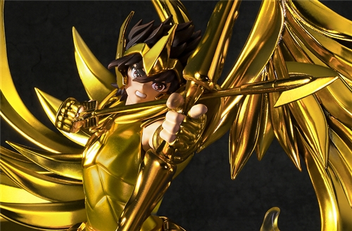 A new statue line that uses hybrid coloring of "plated paint" and regular paint to create a "metallic feel" and reproduces a "sense of dynamism" with outstanding modeling technology, has a dynamic appearance of Sagittarius Seiya about to shoot an arrow. Appearance. A part of the holy clothing is expressed with plated parts, and the dynamic feeling of the holy clothing is reproduced with the modeling unique to fixed figures. Clear parts are used for the pedestal, which is inspired by a collapsing temple, and is designed to give you a feel of the world of Saint Seiya. In addition, a collection sheet common to the series is included.