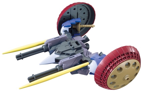 The treasure battleship comes from the anime "Gundam Build Fighters" that aired in 2013. It is a support machine carried on the back of the Gundam model "Vulcan Cannon Type Zeon" used by the character Susumu Sazaki , with a backpack and a built-in beam saber. The shoulder armor is added and integrated into one body, and it is equipped with two long-barreled Vulcan cannons. The two signature round shields are still there and can also be mounted on support aircraft.