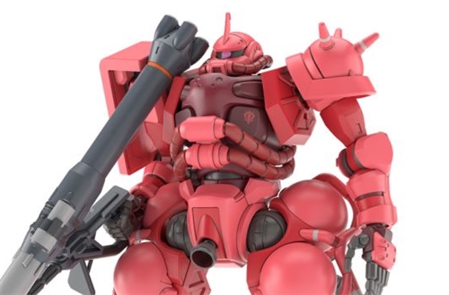 From "Mobile Suit Gundam GQuuuuuX", the mobile suit "Char's Zaku" painted in Char's personal color red is commercialized in HG. A newly sculpted Zaku Bazooka is included. In addition, the shoulder block can move independently, allowing for dynamic action poses. The mono-eye is movable. Marking stickers that reproduce the image in the movie are also included.
