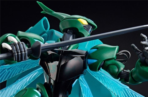 The impressive coloring of the entire body, which was also featured in the work, is reproduced with modern HG standard division and molding color. The distinctive head is reproduced with molding color through precise part division. The aura converter and four wings can move over a wide range. The wings are made of pearl-infused light-collecting resin and have details that mimic wing veins to create a lifelike feel. The chest parts use "half mirror plating." The base molding color is also matched to the coloring of Tokamak Danbine.