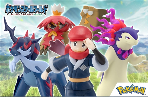 This product is a set of the male protagonist, Teru, and the first three evolved forms from the Jade Region, the setting of "Pokémon LEGENDS Arceus." When combined with the "Pokémon Scale World Jade Region" (sold separately), you can display Cyndaquil, Oshawott, and Rowlet side by side.