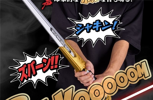 This product boasts a substantial length of approximately 70 centimeters, with the blade, guard, and grip all featuring sculpting and coloring based on the image from the show. Multiple impressive sword-fighting sounds from the film are included, allowing for a more realistic sword-fighting experience. A built-in vibration gimmick also provides a tactile feel when slashing. The lettering on the blade features an LED light-up gimmick, which illuminates the blade along with sound when a special move is activated.