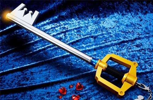 The "Kingdom Chain" Keyblade used by Sora, the protagonist of the "Kingdom Hearts" series, lights up and sounds! Now available as an electronic toy! The exterior of the main body is luxuriously reproduced with silver and gold paint. It is an impressive size, measuring approximately 50 cm in length.
