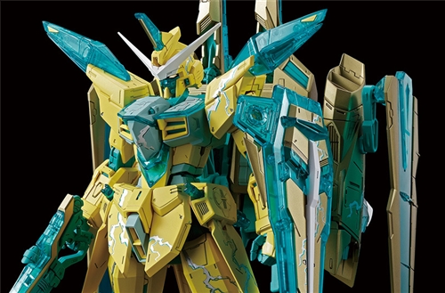 The kit redesigns the original red Justice Gundam into a bright style with bright yellow and transparent green armor. The drone "Fatum-00" mounted on the back uses luxurious gold parts combined with transparent green, and the electric current pattern transfer stickers affixed to various parts of the body have a shiny mirror texture, giving people a special image of lightning.