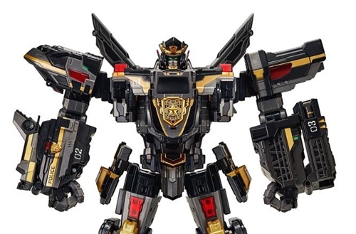 All five rescue vehicles feature highly detailed designs, faithfully reproducing the gold police insignia and the word "POLICE" from each unit. Through a sophisticated transformation mechanism, they can individually transform into a head, torso, and limbs, combining to form the imposing robot form, "Judgment Titan ." The black and gold color scheme of the Judgment Titan exudes power and a luxurious feel, and comes equipped with a baton, shield, police gun, and submachine gun, allowing for stylish combat maneuvers!