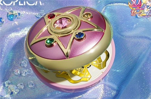 This item is a "-Brilliant Color Edition-" colored version of the "PROPLICA Crystal Star" released in 2015, which is clad in luxury and supreme shine. The center is a pink rhinestone with iris plating, and the four colors surrounding it are Austrian crystals. Depending on the viewing angle and how the light hits it, it takes on a shimmering appearance. Also included are BGM, SE (sound effects), and lines during the transformation by Kotono Mitsuishi, the voice actor of Usagi Tsukino/Sailor Moon.