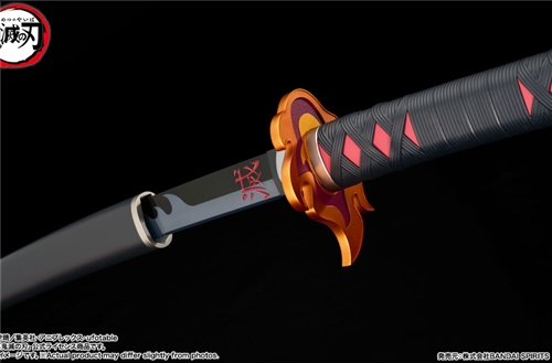 The blade's blade pattern, Kyojuro Rengoku's tsuba, and the character "Metsu" (destruction) are all carefully recreated. A sheath is included, so you can recreate the sheathed and unsheathed states of the sword.