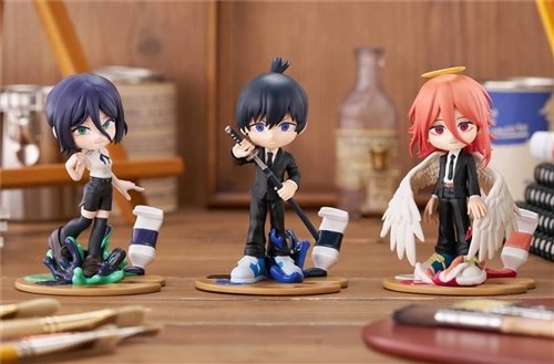 PalVerse is a series of chibi-style figure models based on the concept of "a new world in the palm of your hand." These figures feature a rich variety of character designs within a palm-sized format, and are also affordable for collectors. The series boasts three main selling points: characters from anime, games, and VTubers. The " PalVerse Palé. Chainsaw Man: Reese the Movie " box set includes three characters: Reese , Aki Hayakawa , and Angel /Devil. Standing approximately 11cm tall, the figures are designed in a 3-head-tall proportion. Continuing the Palé series' paint theme, the base is designed as an oil paint palette, complete with paint bottles in the character's representative color and vividly applied paint – adding a sense of dynamism! The costumes and paintwork also feature exquisite details.