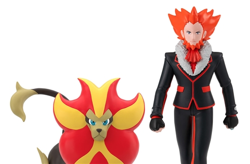 "Pokémon Scale World" is a series of three-dimensional figures at approximately 1/20 scale, based on the concept of recreating a world where humans and Pokémon coexist. Pokémon figures are available in a wide range of sizes, from small enough to be pinched between your fingertips to large enough to fill both hands. This time, from the Kalos region, the setting of "Pokémon X & Y," Faba, the researcher who invented the Holocaster and boss of Team Flare, is featured. This set includes Faba, its partner Pokémon, Flamethrower.