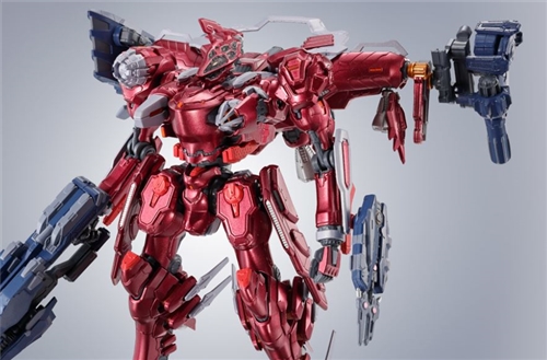 This movable toy of Robot Soul's "IB-C03: HAL 826" is about 15 centimeters in height. It faithfully reproduces the aircraft piloted by "Guide" Walter in the game. The metallic red appearance of the aircraft is quite eye-catching and distinctive. It has texture, and the weapons on the arms can be unfolded and closed to reproduce the attack or non-attack posture. The rifle attached to the right arm can be unfolded by replacing parts, and the propeller on the back can also be unfolded. In addition to weapons, there are also left and right interchangeable hand parts.