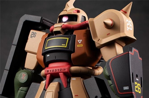 The Zaku Desert Type is the third installment in the "ROBOT Spirits ver. ANIME ~MS MUSEUM~" series, which boasts a museum-like display. Pursuing even greater realism for the mobile suit, markings evoking the suit's performance are expressed using tampo printing and paint. In addition to a new display base that looks great standing up, the set also includes an M-120AS machine gun, SA-712 cracker pod, and Rats River triple missile pod.