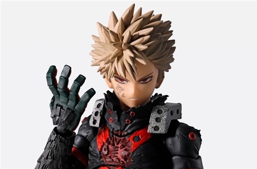 From the TV anime "My Hero Academia," Bakugo Katsuki makes his return in the final battle and is now available in the SHFiguarts series. The figure includes a variety of optional parts, allowing you to recreate the final battle scene. It also includes an interchangeable facial part, depicting the smiling expression he had when he inherited the weapon from Armored All Might.