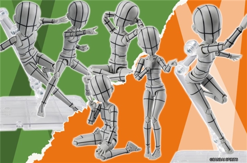 The body, which depicts the silhouette of a boy or girl, has over 30 points of articulation, allowing for the recreation of various poses. Wire designs printed on various parts of the body allow for easy understanding of the drawing points of the illustration. A variety of interchangeable wrist parts are also included, allowing for the expression of various situations.