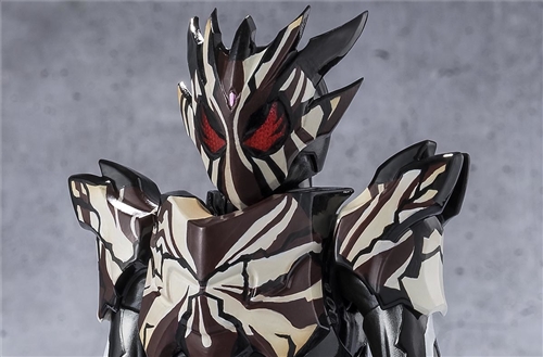 The suit, designed with a marble cookie motif, has been recreated in the "SHFiguarts" format. The intricate marble patterns on the entire body, including the mask, body, shoulders, forearms, and shins, have been carefully recreated. The mouth on its stomach, Bittergab, is equipped with a gimmick that allows the upper jaw to open and close, and the handle to rotate. The "Marble Bray Cookie Gochizou" set inside can be attached and detached from the belt, and can also be held in the hand using the included wrist parts.