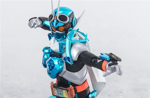Steam Hopper, Kamen Rider Gatchard's basic form, is now available at SHFiguarts. The armor's design incorporates the design of a steam locomotive, and the metallic blue coloring is also reproduced exactly as imagined in the movie. Another highlight is the colorful gradation paint applied to the transformation belt's Gatcha driver.