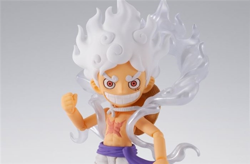 This is the second collaboration between the deformed figure series "World Collectable Figures" and the action figure brand "SHFiguarts." Monkey D. Luffy - Gear 5 - is now available as a World Collectable Figure-sized action figure. The entire body of this World Collectable Figure-sized figure is fully articulated. A wide variety of optional parts are included, allowing you to recreate a variety of different situations.