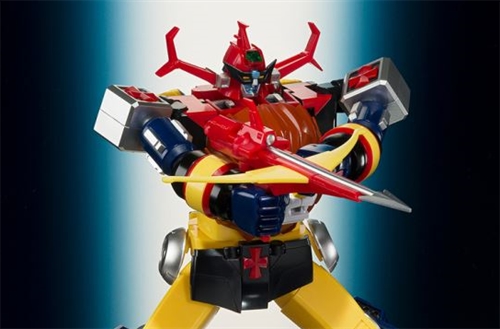 Three mechas: the humanoid robot Atlasus, the fighter plane Gamper, and the cyborg lion Velarios are combined into one to form Daltanius. It will be released as a "cross in set" that comes with a variety of weapon parts that correspond to each mecha and combined state. The powered-up flame sword is recorded in a large volume with a total length of approximately 166 mm!