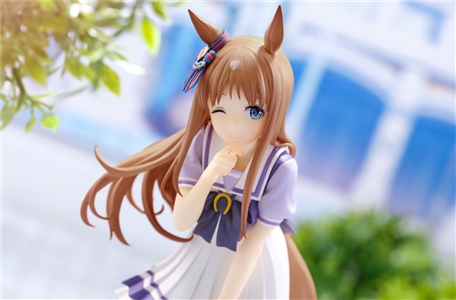 An original pedestal with a horseshoe and lawn motif is included, enlivening the world of "Uma Musume".