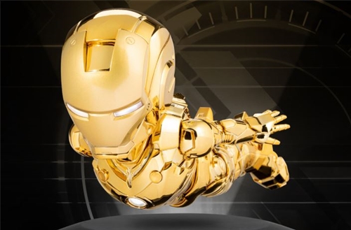 From Beast Kingdom North America. Beast Kingdom proudly introduces the Metallic Gold Edition of the Egg Attack Floating Iron Man figure, a limited edition celebrating one of Marvel's most iconic characters. 2008 marked the official launch of the Marvel Cinematic Universe with Iron Man, setting the stage for what we know today. Now, fans can own a piece of history with this levitating collectible, featuring a sleek Metallic Gold finish that enhances the hero's powerful look. Professionally painted with glossy and matte finishes, the figure comes to life with LED lights in the eyes, chest, and feet.