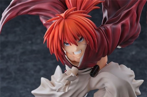 Shadow paint has been applied to the hair, kimono, and pedestal, further enhancing the figure's sense of weight and worldliness. Also, pay attention to the expression of Kenshin's face and the details of his reverse-blade sword!