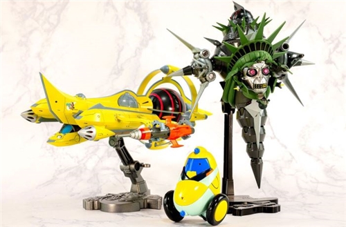 The "Space★Dandy Mechanic Selection" set includes Dandy's spaceship "Aloha 'Oe," the all-purpose robot "QT," and Dr. Gel's spaceship "Carnegie Lemon." From the form and details to the unique pop and hard-boiled atmosphere of the series, everything is carefully reproduced.
