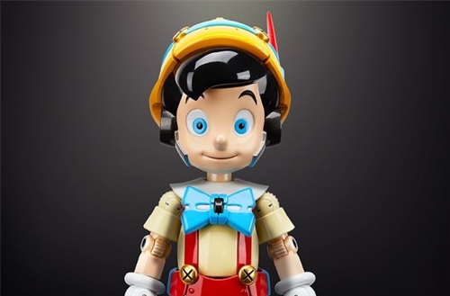The design highlights Pinocchio's distinctive wooden carving form, and with various interchangeable