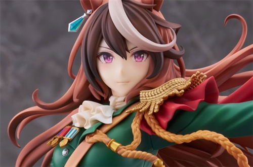She is a dignified and beautiful Umamusume worthy of the name "Emperor," and her elegant poise has been faithfully recreated in figure form. Her hair and costume flutter realistically as she gazes confidently straight ahead. Her pose, in which she is standing proudly and cutting the wind with her left arm, gives her a unique and unrivaled style. Her signature racewear, "Emperor's Path," is faithfully reproduced down to the smallest of details and decorations. The pedestal is also simple, yet sturdy with shiny gold decoration.