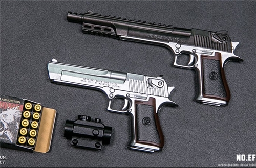 DAM EF025 DESERT EAGLE SET DESERT EAGLE handgun (steel silver) DESERT EAGLE handgun with custom parts(long barrel) (steel silver/black) Accessories: Red dot sight Boxed .50 AE MAG ammo
