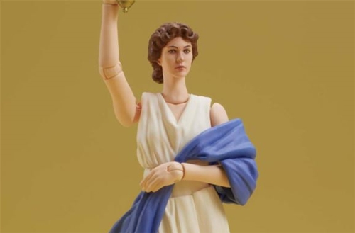 This DIGACTION Columbia Pictures Torch Goddess movable figure is about 8 cm tall. It carefully restores the shape of the Torch Goddess at a small 1/24 scale, carving out the beautiful wrinkle details of the clothing, the iconic facial features and the slender body. arms, and cleverly split the skirt on the body to reduce the impact on mobility. The blue interlining wrapped around the hand also has a hole in the middle, which can be covered when posing the logo, but at the same time ensures that the left arm can be taken out to create different dynamics. This time, it will also come with a ladder-shaped special stage, a background plate with "COLUMBIA" and the word "sky" printed on it, and a torch made of color-transparent material, which can perfectly restore the familiar title sequence to all movie fans!