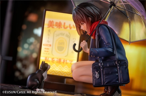 EUSUN presents a delicate 1/7 scale figure titled "Rainy Day Encounter", capturing the quiet beauty of an emotional moment in the rain. Standing at 160mm, the figure showcases fine details and gentle colors, perfect for collectors who enjoy serene and romantic themes. Early pre-orders include exclusive bonus accessories: a white cat film overlay and a rose prop to complete the scene.
