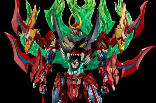 "Tesukio Tengen Toppa Gurren Lagann" is made with a movable specification of about 35 cm in height. The overall shape combines the original setting with the original design of FLAME TOYS, delicately reproducing the facial shapes of all parts of the body, the flame-like lines symbolizing the large red lotus, and the spiral force special effects made of transparent materials. At the same time, it is painted with rich metallic colors, gradient colors, etc., showing a heavier texture. The head and chest are also equipped with built-in LED light-emitting mechanisms.