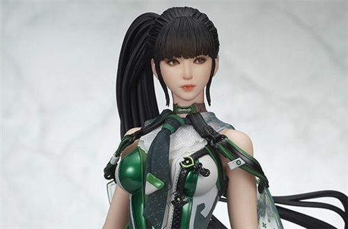 The main character, Eve, is recreated in a pose that highlights her beautiful figure. Her flowing black hair creates a sense of dynamism, and her hip line is beautifully accentuated by her suit, making this a figure that can be enjoyed from every angle. Also noteworthy is the detailed construction of her weapon, which is rich in texture.