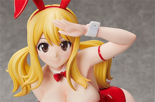 Lucy Heartfilia, the heroine of "FAIRY TAIL" is back again in a bare-legged bunny outfit! The bright red bunny suit is perfect for the lively and innocent Lucy! The bunny outfit highlights Lucy's voluptuous curves and the lack of fishnet tights shows off her long and slender legs. Be sure to add this impressive 1/4 scale figure of the alluring Lucy to your collection!
