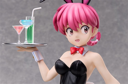 From the anime "Ranma 1/2" comes a scale figure of the main character Ranma in an original bunny girl outfit! The 1/4 scale figure stands at an impressive 440mm in height. The lustrous bunny outfit highlights her slim physique, while the red heels and ribbons on her chest add a touch of glamour. Real net tights are used for a realistic look and feel. A tray with a colorful cocktail glass in her right hand adds a playful touch. Ranma, loved by fans all over the world, has been brought to life as a special figure. Be sure to add this rendition of Ranma to your collection!