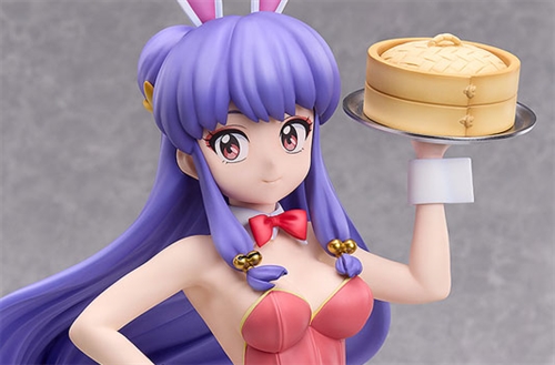 From the anime "Ranma 1/2" comes this figure of Shampoo in an originally designed bunny girl outfit. This large 1/4-scale figure stands at approximately 460mm, looking impressive and gorgeous. Her pink bunny costume is an original design based on her regular Shampoo outfit. The ribbons on her chest and waist, as well as the white fishnet stockings, have been carefully molded, down to the finest details. Her long, flowing hair has elegantly taken shape. She is holding a bamboo steamer in her left hand, radiating her usual charm and energy. Display her together with the previously introduced Ranma figure to further expand your Ranma 1/2 world. Be sure to add her to your collection!