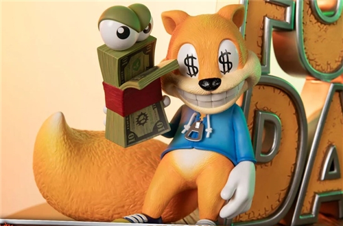 The Exclusive Edition includes an additional interchangeable right hand holding cash and an additional interchangeable head with dollar sign eyes and a wide smile, perfectly capturing Conker’s reaction to the sight of money.