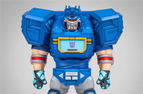 LEAGUE OF STEEL (League of Steel) is a product series of Fool's Paradise that features bold looks and characters with muscular physiques like football players. Among them, Transformers-themed works have been launched such as Ke Bowen, Bumblebee, and Mikado. The protagonist of this time is the Decepticon spy master "Sound Wave"! The height reaches 38 centimeters and is made of Vinyl and PVC materials. It not only reproduces the main tone of blue and gray and is embellished with yellow, the chest, shoulder armor, and head all have the characteristics of the G1 setting, and the waist part is also carved according to the character's characteristics. The word PLAY and the play button... etc., coupled with the rich details and aging treatment, the whole thing is quite handsome!