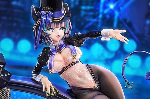 From the popular smartphone game "Azur Lane" comes a scale figure of Cheshire in her "The Cat in the Magic Hat" outfit! Cheshire is clad in a tight suit with translucent details, highlighting her adorable yet alluring charm! Translucent parts have been used for her outfit, which hugs her delicate-looking complexion that has been carefully recreated using skillful paintwork. Her long legs, wrapped in smooth black tights, add to the figure's elegance. The base features motifs from the original illustration, including playing cards, dice and a roulette. The silk hat and manjuus emerging from the back of the base add a playful touch to the figure. The figure includes interchangeable front hair parts, left hand parts and a silk hat with manjuus, allowing you to recreate the magic show scene! Be sure to add the adorable and alluring Cheshire to your collection!