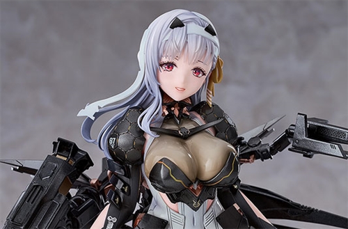 From the popular smartphone game "GODDESS OF VICTORY: NIKKE" comes a 1/7 scale figure of Modernia! The texture of Modernia's distinctive outfit ihas been brought to life with elaborate paintwork. Her outfit, which hugs her voluptuous physique, along with the weapons on her back, have been recreated to the smallest details. Additionally, Modernia's equipment can be removed and interchangeable parts are included for a wide variety of display options! Be sure to add the adorable yet alluring Modernia to your collection, Commander!